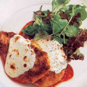 Molde De Pechugas Apanadas Sobre Salsa De Tomates Y Queso Mozzarella