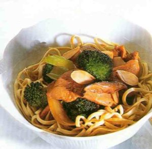 Pollo Oriental Con Champiñones, Brocoli Y Almendras