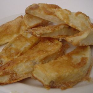 1 1/2 Libras de manzanas de cáscara verde o Granny Smith -unas 3- peladas sin corazón, partidas en cascos delgados