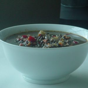 Sopa De Lentejas Servida En Cazuelas Con Toping De Queso Parmesano Y Aceite De Oliva