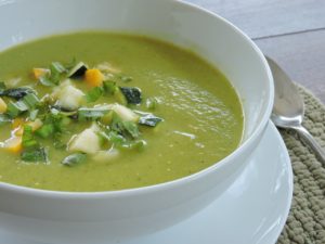 Crema De Calabacines Verde Y Amarillo Con Albahaca Y Limón